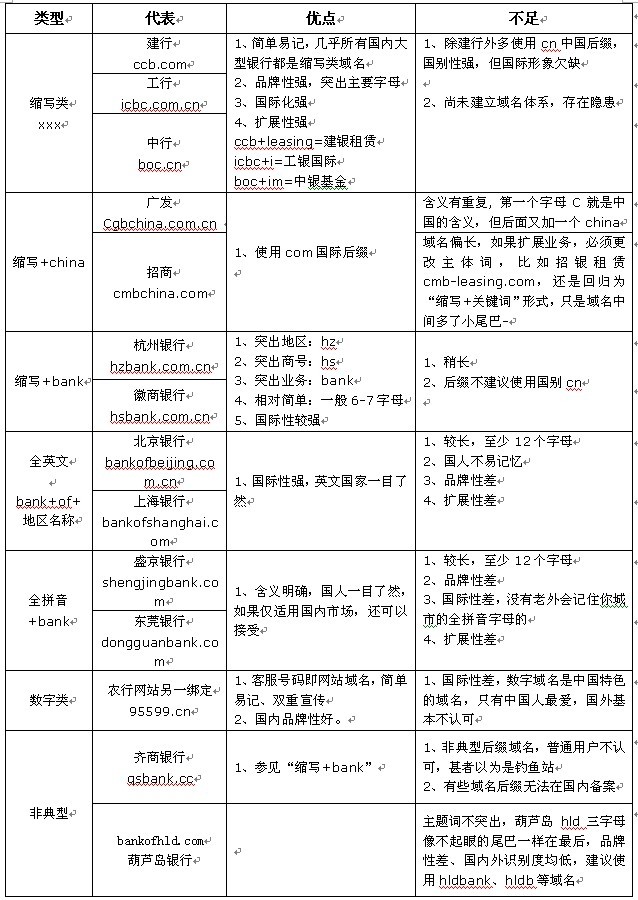 先別下結論,先舉例來總結下目前銀行域名的類型和優(yōu)缺點: